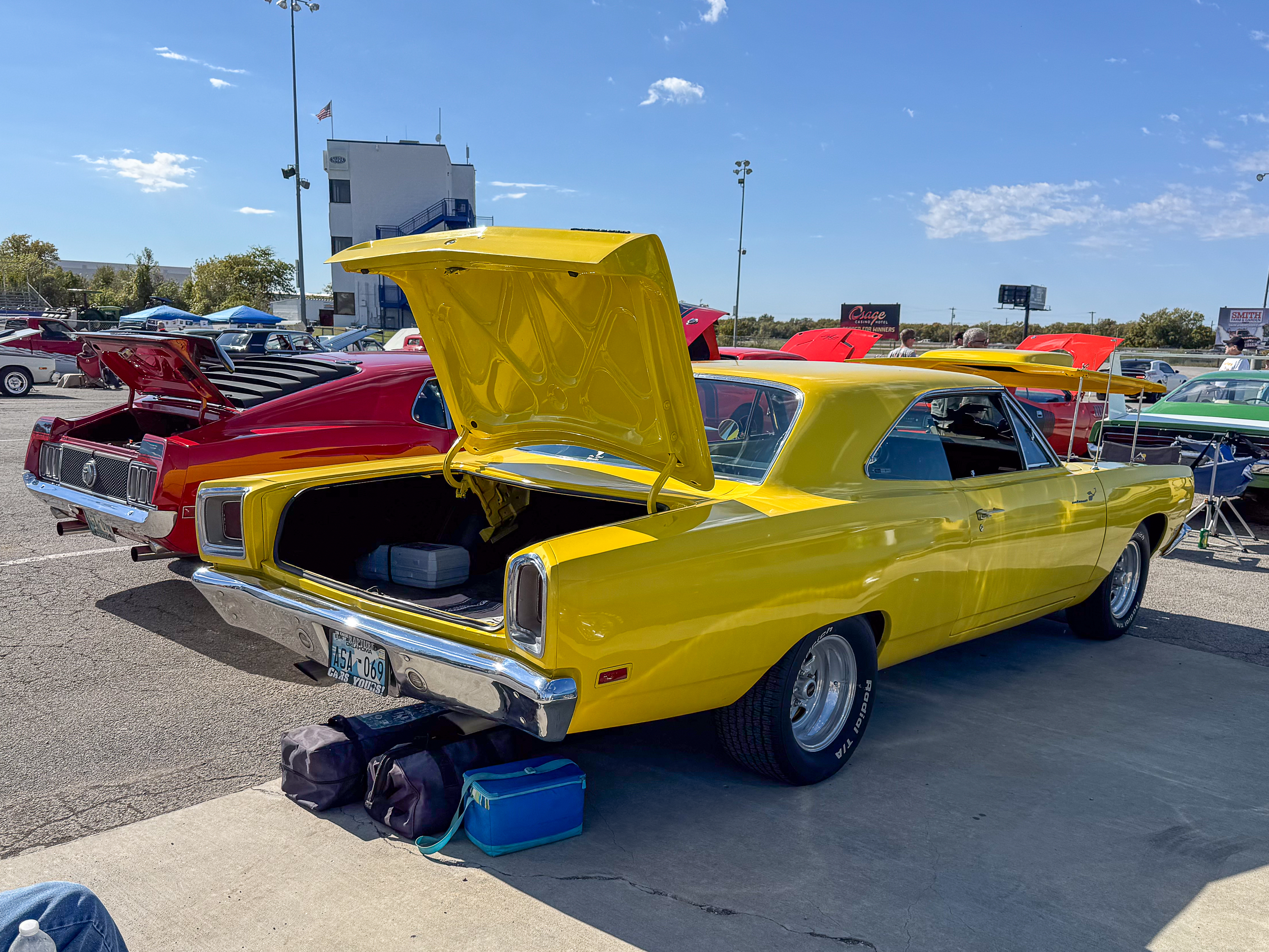 Several members participated in an enjoyable cruise to the Tulsa International Raceway for the “Mopars in the Park” event. The journey began under cloudy and rainy skies, but as the group made their way toward Tulsa, the weather improved significantly—giving way to clear and beautiful conditions for the remainder of the day.