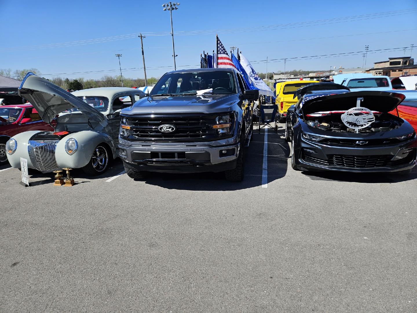 Left: David Spry’s 1940 Ford Tudor; Scott Chisum’s 2025 Ford PU; Kristy Chisum’s 2020 Camaro.